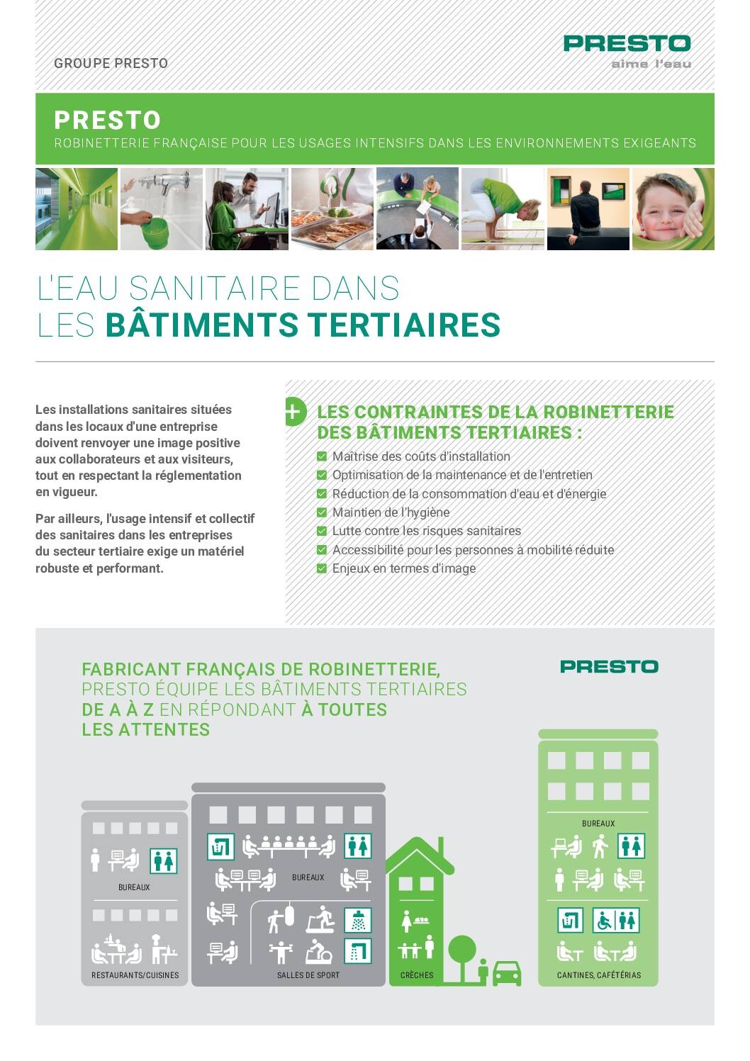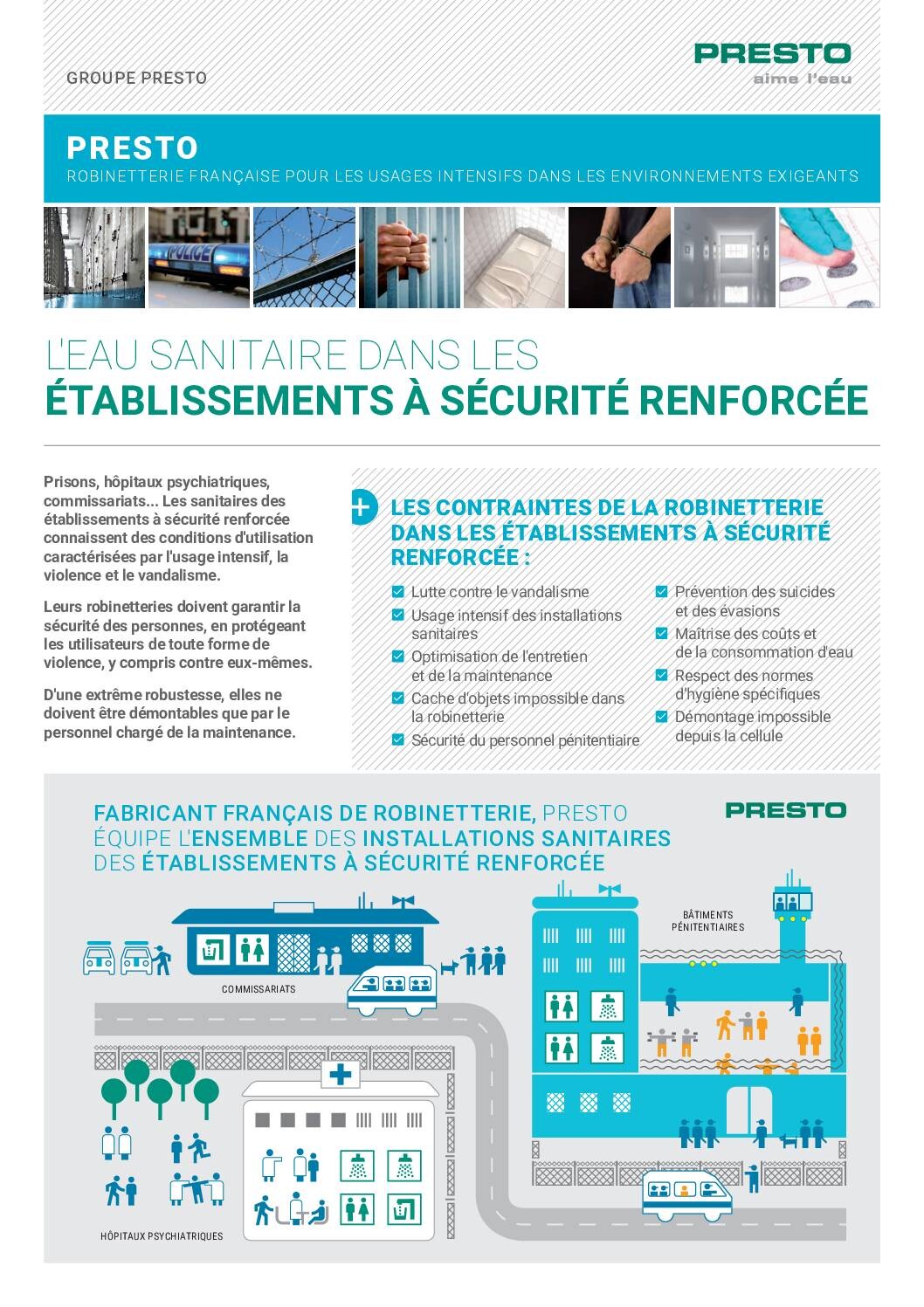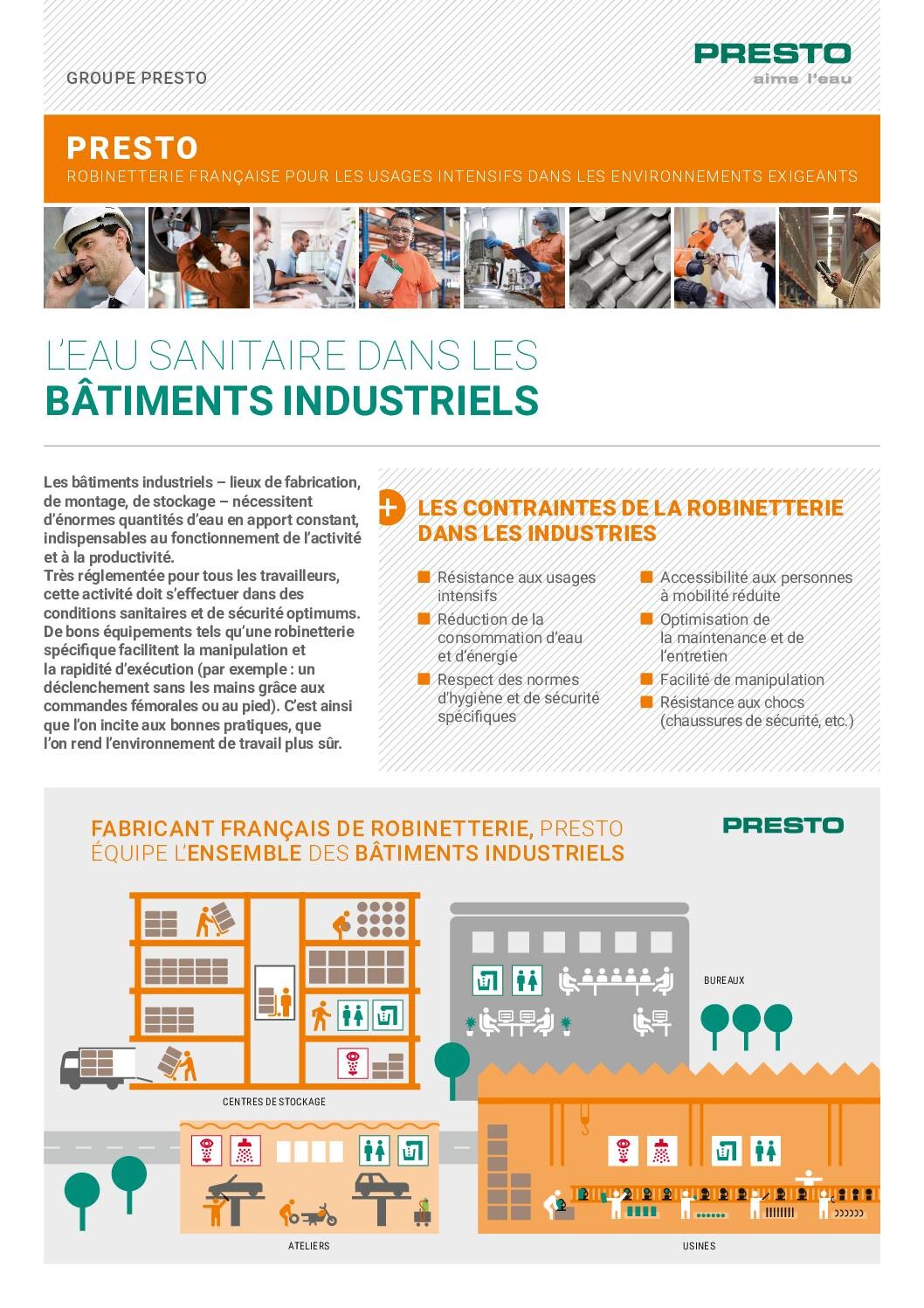 PRESTO hat rund 220 Angestellte in Frankreich, der Firmensitz ist in Montrouge und zwei Produktionsstätten befinden sich in Poitou- Charentes. In Saint-Georges-de-Didonne werden die vollständigen PRESTO Produkte entwickelt und gefertigt, während in Angoulême nur die SANIFIRST Armaturen hergestellt werden.