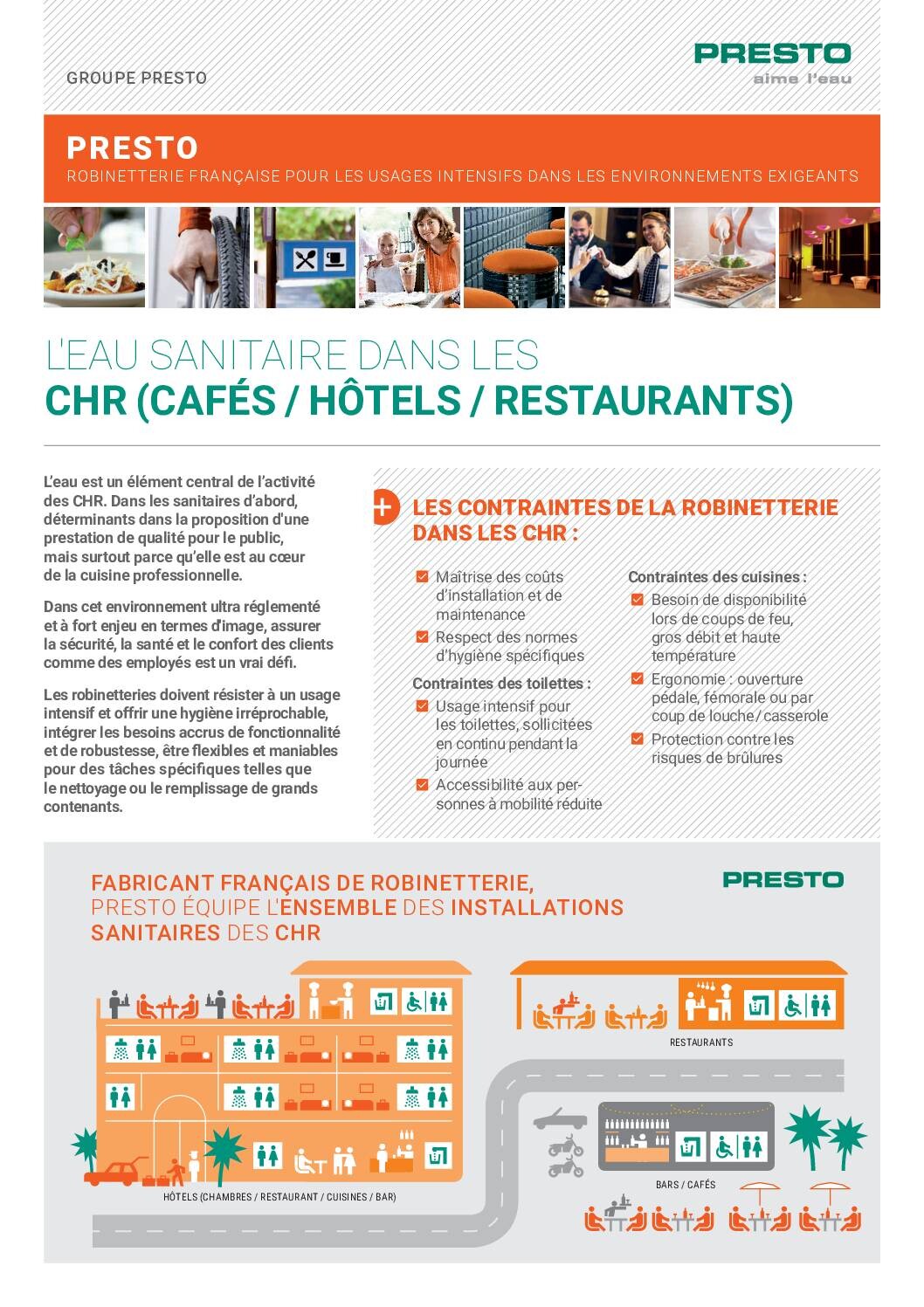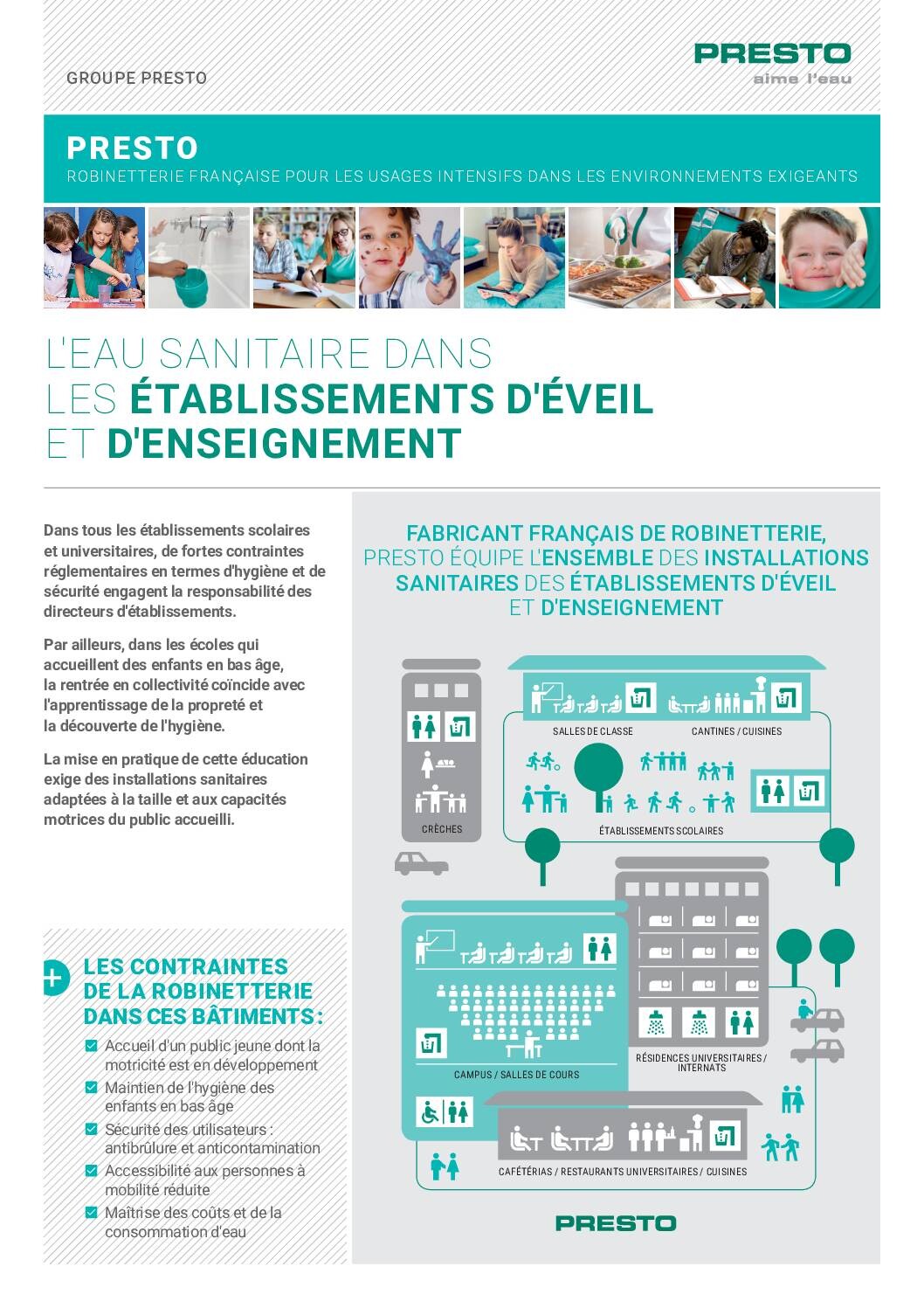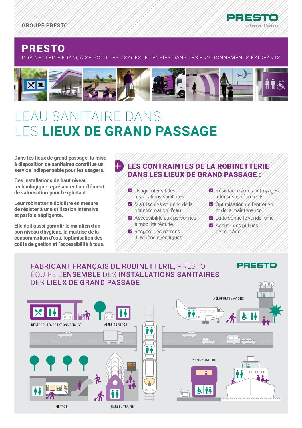 PRESTO hat rund 220 Angestellte in Frankreich, der Firmensitz ist in Montrouge und zwei Produktionsstätten befinden sich in Poitou- Charentes. In Saint-Georges-de-Didonne werden die vollständigen PRESTO Produkte entwickelt und gefertigt, während in Angoulême nur die SANIFIRST Armaturen hergestellt werden.